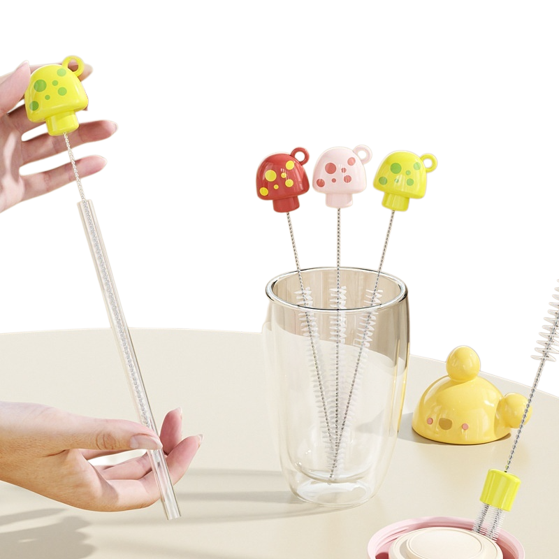 Heart Mug Cleaning Brush Dual Purpose Cup Brush Bottle Brush Small Mushroom Baby Kitchen Straw Brush