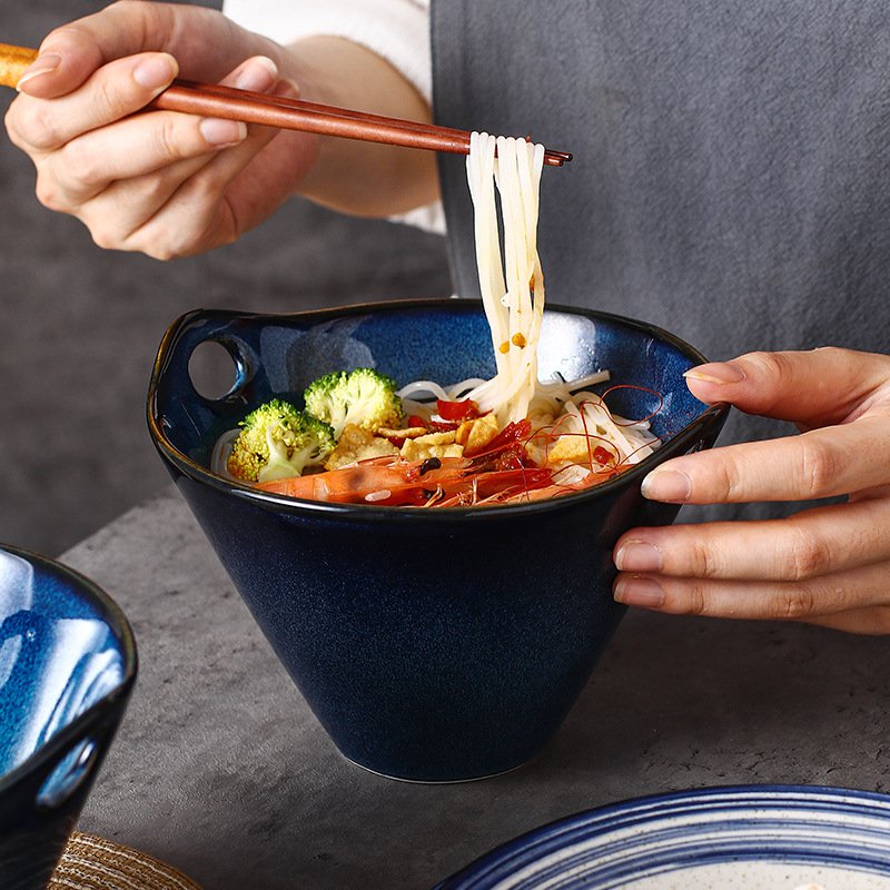 Japanese kiln noodle bowl ceramic hat bowl household ramen bowl double ear bowl creative tableware e